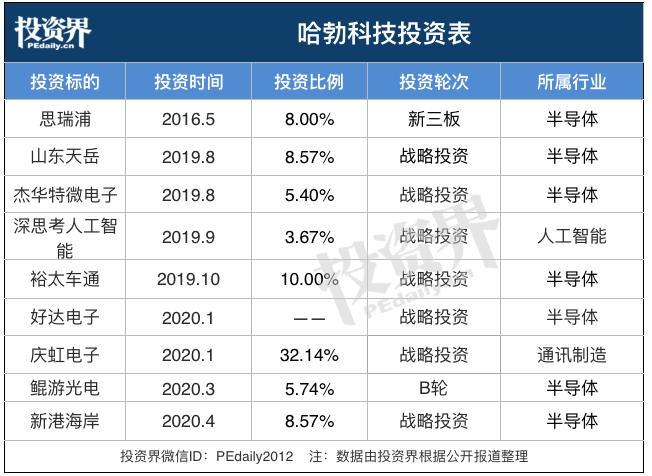 投資界根據(jù)公開的信息梳理,這一年來,哈勃投資相繼投資了9家企業(yè)。分別為:新港海岸(北京)科技有限公司、山東天岳先進(jìn)材料科技有限公司、蘇州裕太車通電子科技有限公司、上海鯤游光電科技有限公司、深思考人工智能機(jī)器人科技(北京)有限公司、無錫市好達(dá)電子有限公司、杰華特微電子(杭州)有限公司、慶虹電子(蘇州)有限公司、思瑞浦微電子科技(蘇州)股份有限公司。
