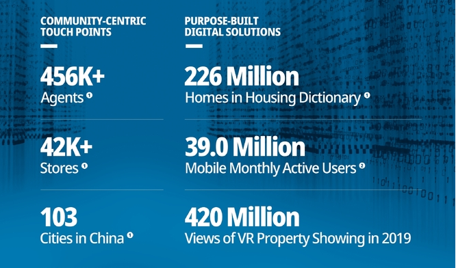 2018年,鏈家升級為貝殼找房,主要業(yè)務(wù)為客戶提供新房和二手房交易、房屋租賃、房屋裝修、房產(chǎn)金融解決方案及其他服務(wù)。2019年,貝殼共完成超過220萬單交易,總計產(chǎn)生人民幣21280億元的交易總額(GTV),成為中國最大的房地產(chǎn)交易和服務(wù)平臺。